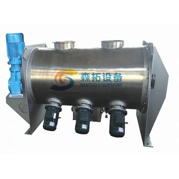 犁刀混粉機,由主軸減速機帶動犁刀組軸運動,一部分將物料沿筒體圓周作徑向運動,同時將物料沿犁刀兩側的法線方向拋出,另一部分被拋出物料經飛刀組時,被高速旋轉的飛刀剪切攪拌而強烈也適合粘狀、稠狀、塊狀固—固(粉體與粉體)、固—漿(粉體與膠漿液)的物料或密度差異較大的物料也能混合。