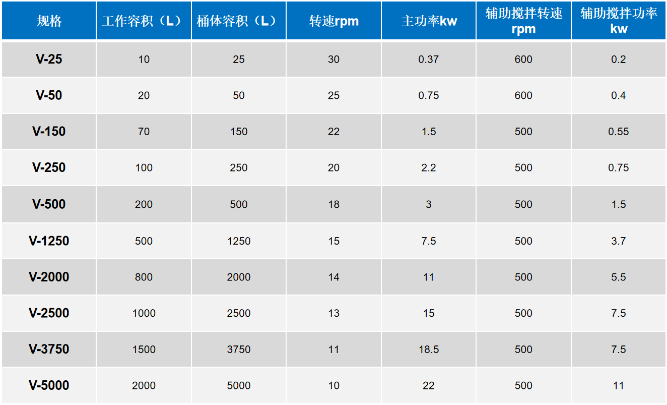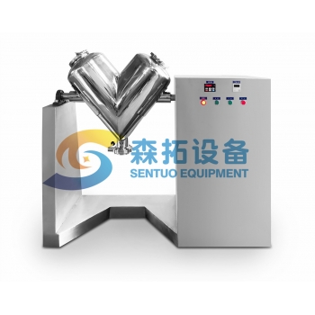 - V型混合機由二個不對稱筒體組成,物料可作縱橫方向流動,混合均勻度可達99%以上。